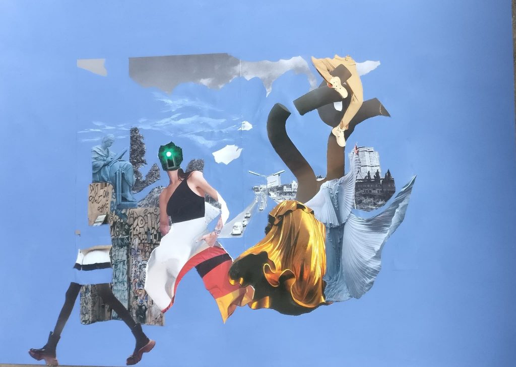 “ My collage work is often initiated by ‚randomness‘ – random events, random juxtapositions, random thoughts. A lot of my pieces comment on politics and society i.e. distribution of power, feminism, social injustice. I consider collage a perfect medium to express these ideas, allowing me to explore ambiguities in a way that feels natural to my random approach. I am also inspired by surrealism and enjoy creating work that leaves people a bit perplexed or amused. I hope people are encouraged to see their own meanings and find their own stories when viewing my work”